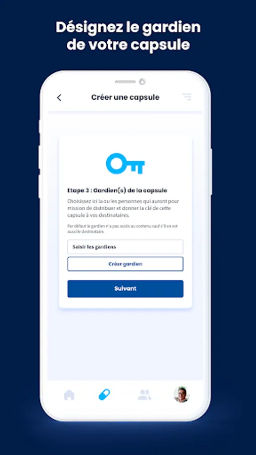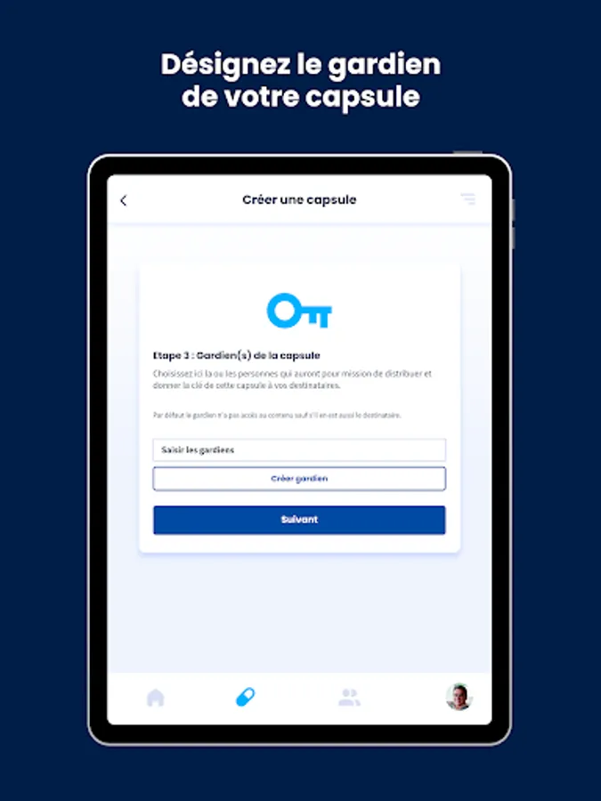 Your guardian will receive in time, the confidential and encrypted virtual key of your digital time capsule, with the link of your recipients.