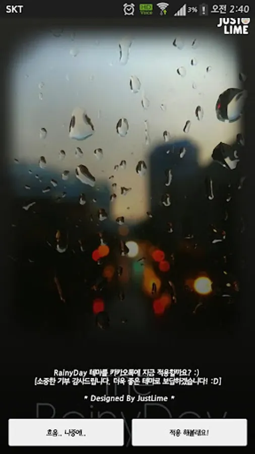 KeyWord: TheRainyDay, rainy day, doodles doodles, phone themes, KakaoTalk, KakaoTalk theme, themes, rain, rain, Rain, KakaoTalk, KakaoTalk Theme, Umbrella, Hello Venus, JustLime.