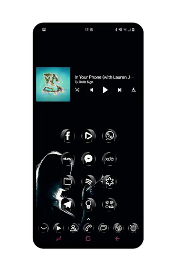 **To customize the Drawer, tap the drawer icon, select Edit->click on the icon->ADWTheme Icon Packs -> Crystal Black HD ->Choose icon.