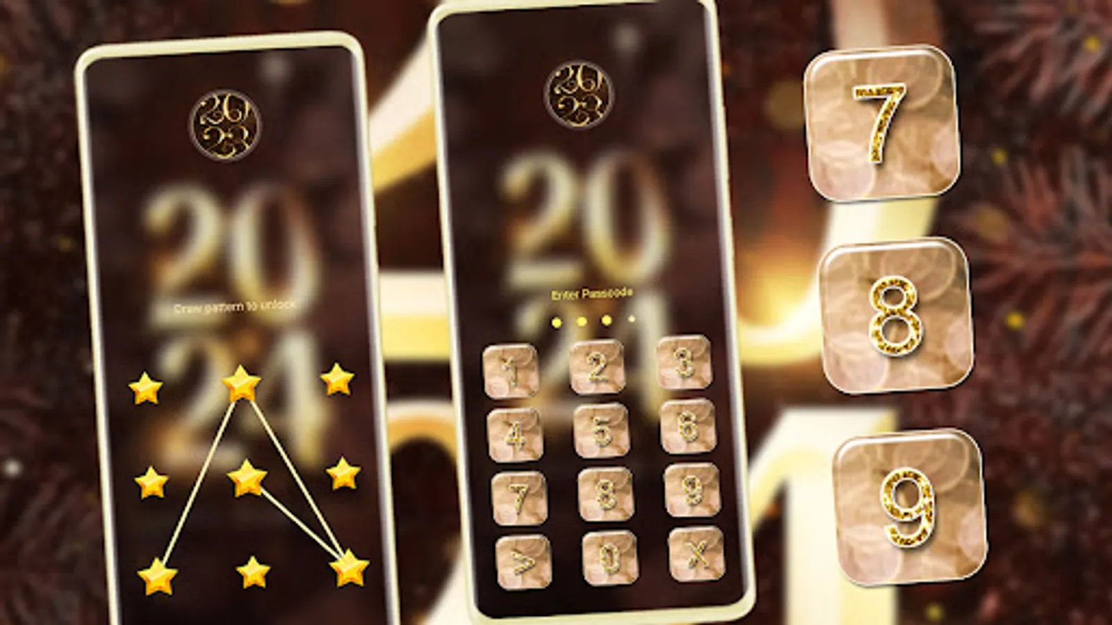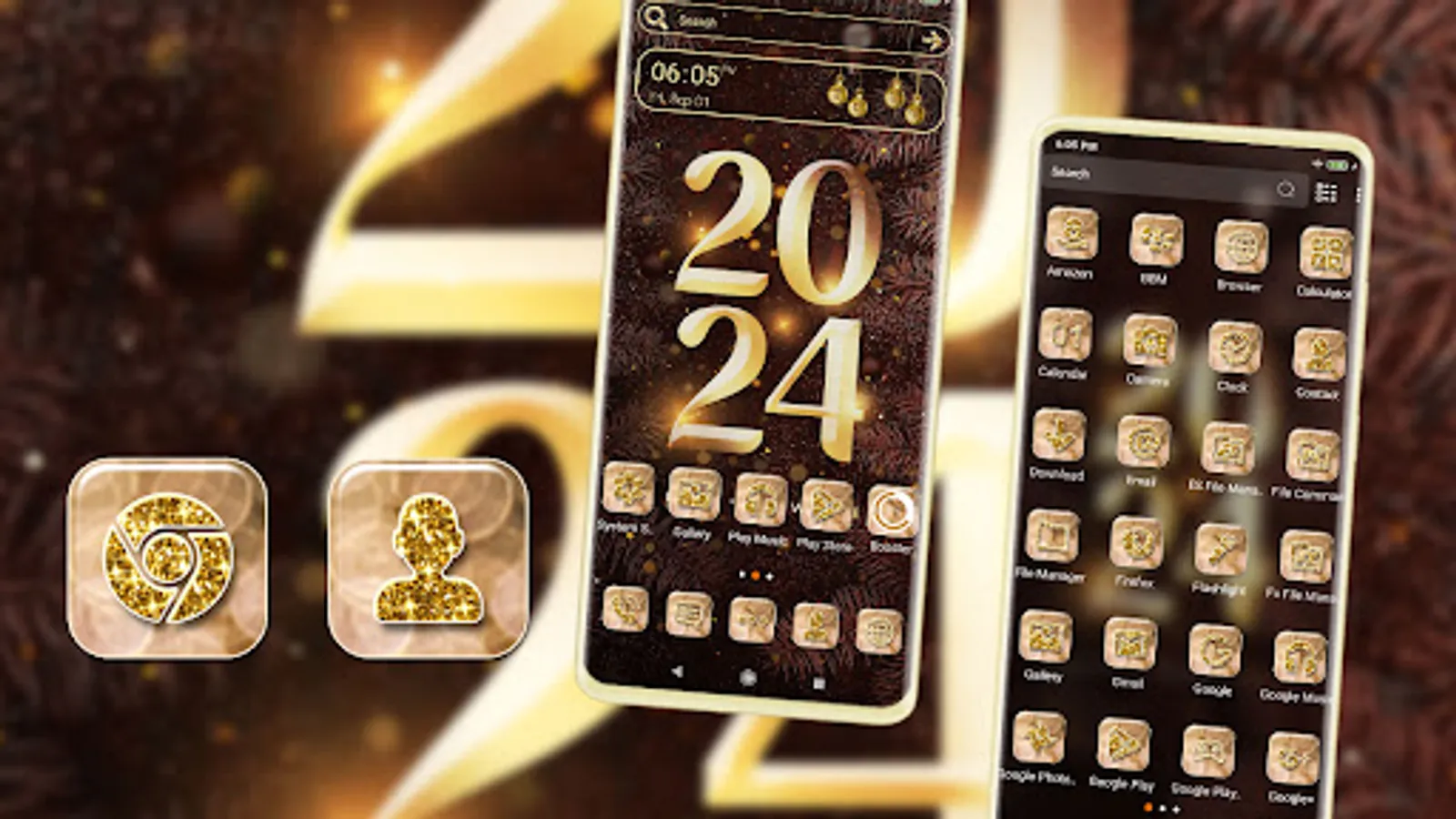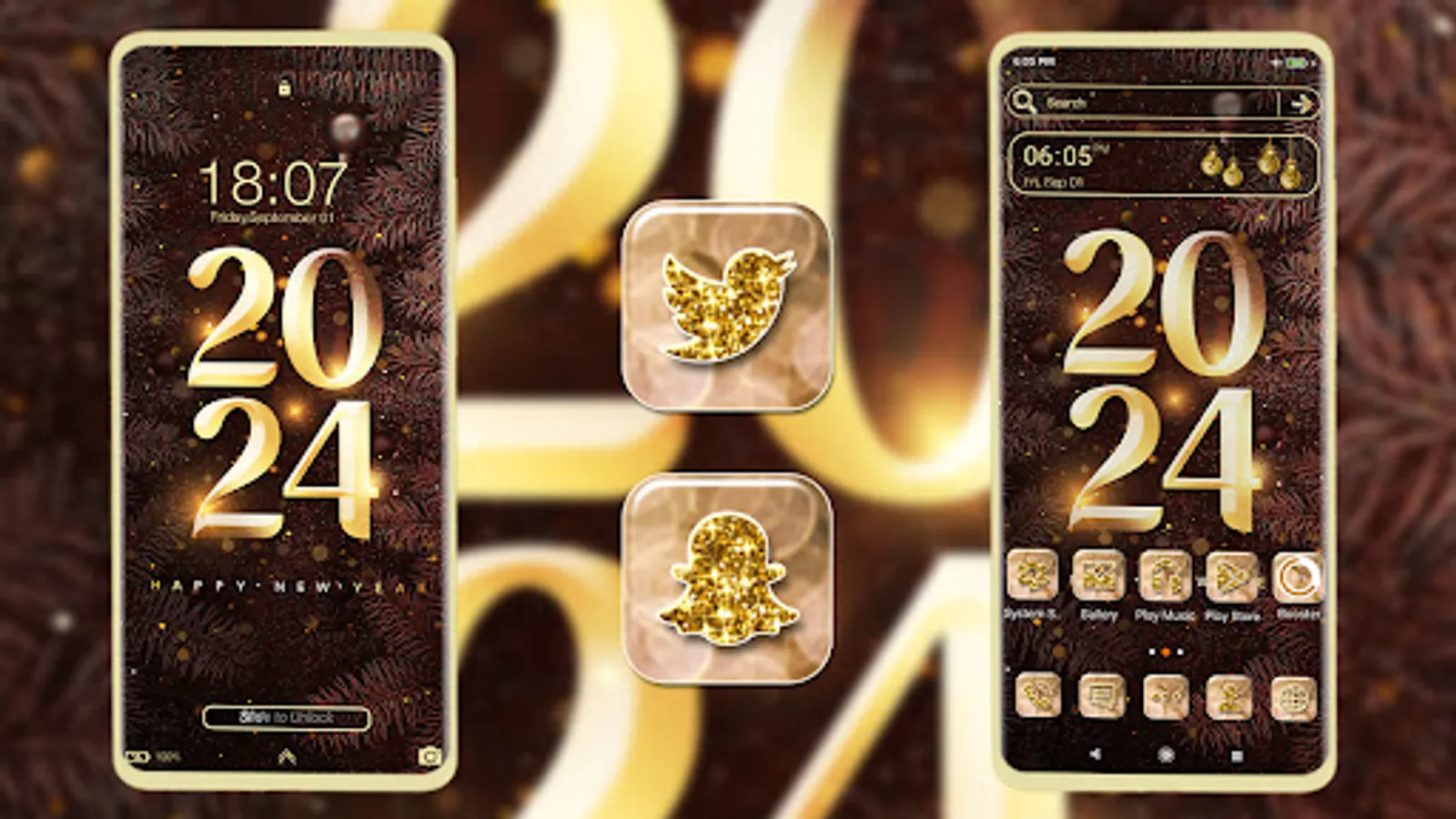 Try best home screen High Style 2024 Happy New Year Launcher Theme! It is a full mobile theme changer complete with HD wallpapers.