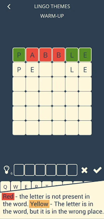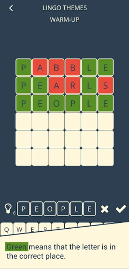 ◾ Like in original game show Lingo, the first letter of the guessed word is displayed on the board.