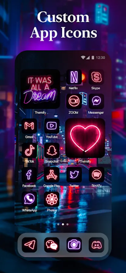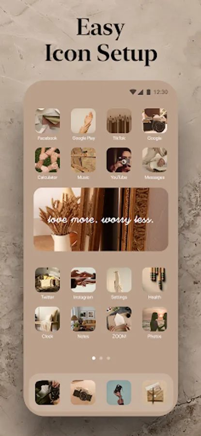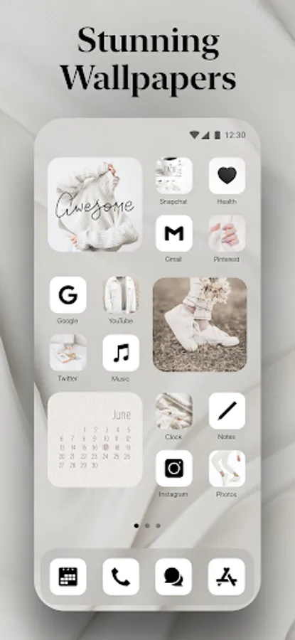 Our app offers a launcher with a vast collection of 3-in-1 custom themes. Want to combine convenience with aesthetics? Themify has your back. App icons perfectly matched to each theme, the best widgets, and aesthetic wallpapers will help you personalize your phone and make it look neat and stylish. Explore an abundance of themes to choose the one you like most. The best part is that you can install them to your home screen at once!