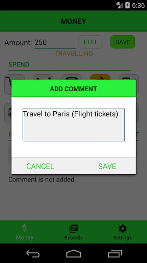 You put a record using just a couple of clicks so you save time significantly but you keep all your spending recorded.