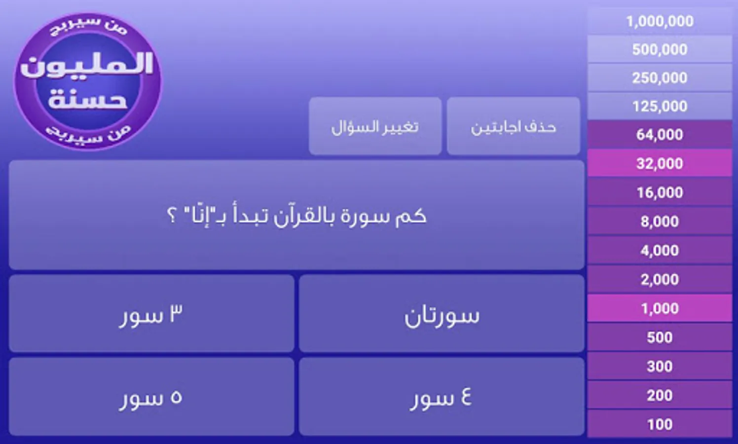 An application that contains questions that melt Islamic and purposeful in many easy, medium and difficult levels