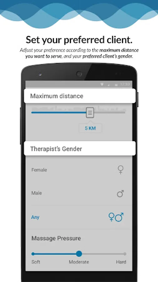 3. SET YOUR PREFERENCE. Set your preferred client’s gender and the maximum distance of requests you want to receive;