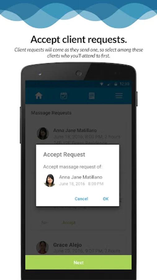 4. ACCEPT BOOKINGS. Clients will find you through our app, and once you have a booking request, you may accept those and later go to there area to give them their long awaited massage;