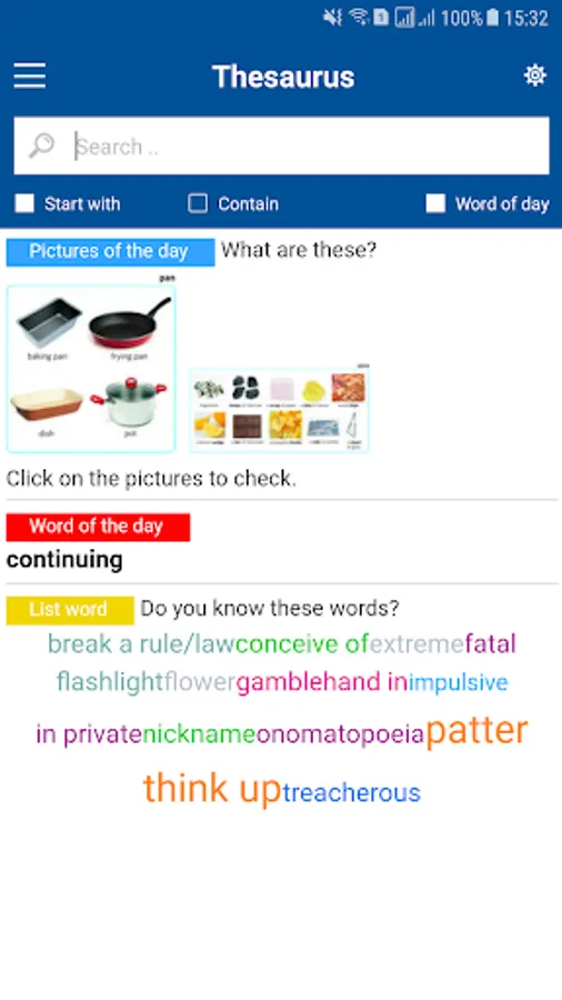 - Search history to help you find recently searched for words