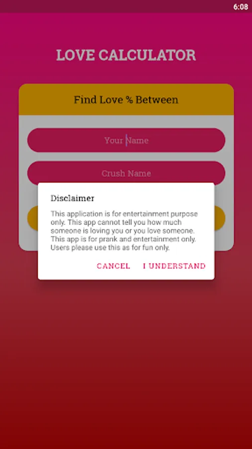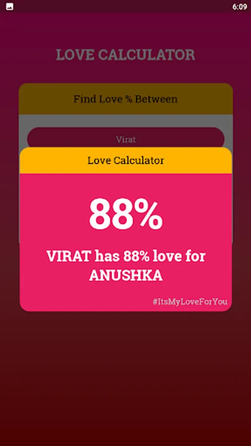 Be smart,This Love calculator app is just for fun Don't take it too seriously cause one algorithm can't decide your love for your Girlfriend. It's just an assumption.
