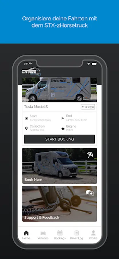 Thanks to car-sharing technology, you get your STX-2Horsetruck on demand, 24/7 and just a click away.