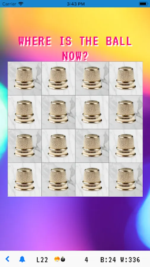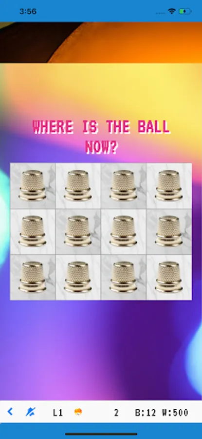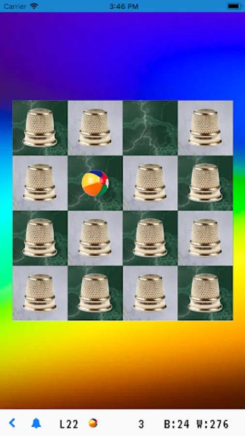 Play the classic game of Thimbles with this app. Find the ball under one of the moving thimbles.