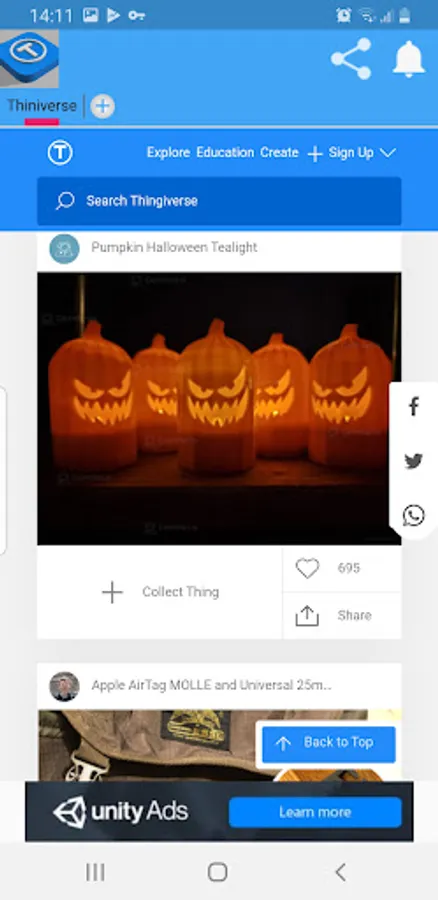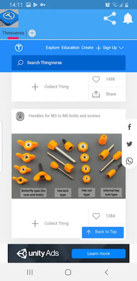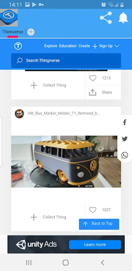 A comprehensive Library of 3D printable files, Thingiverse allows to search, browse, download and upload STL files, to print on your 3D printer at home.