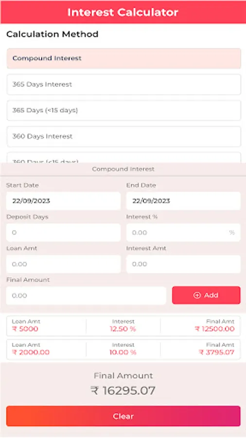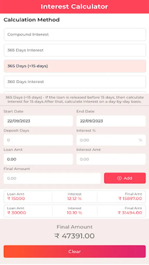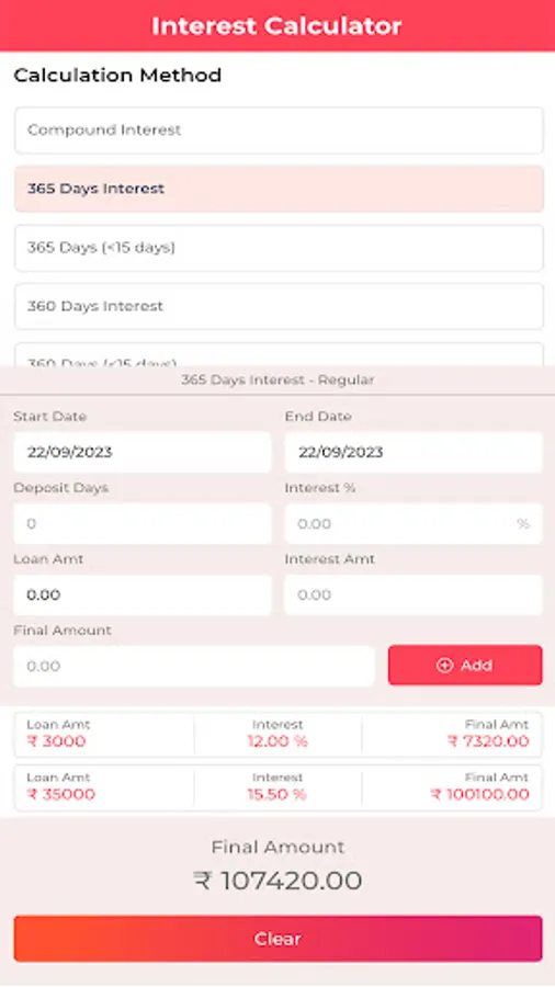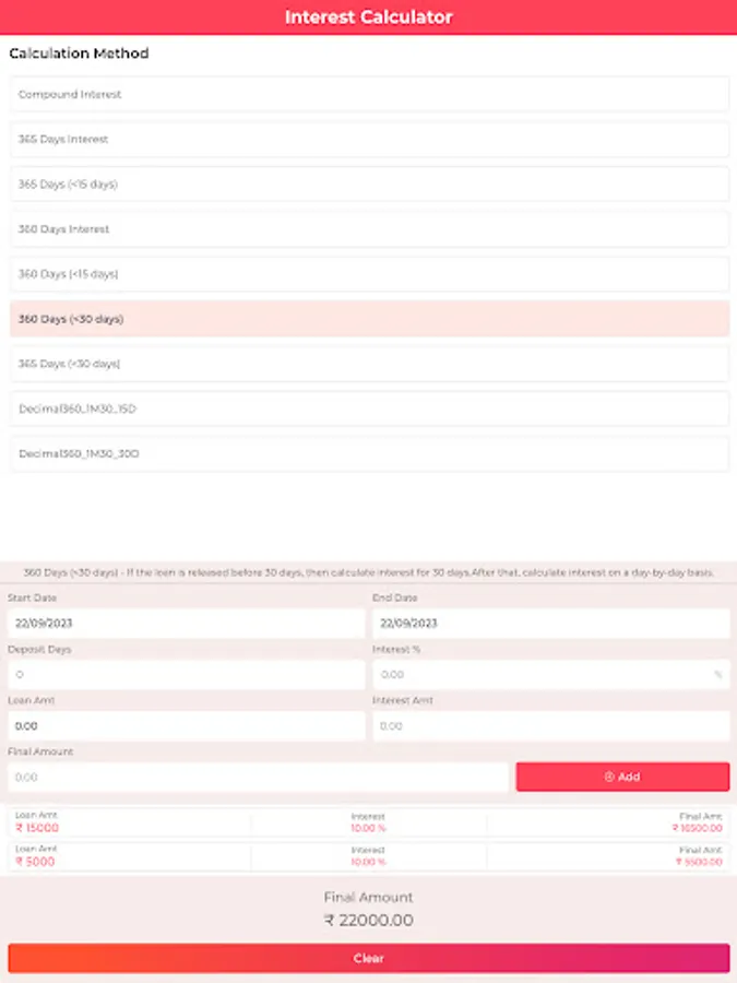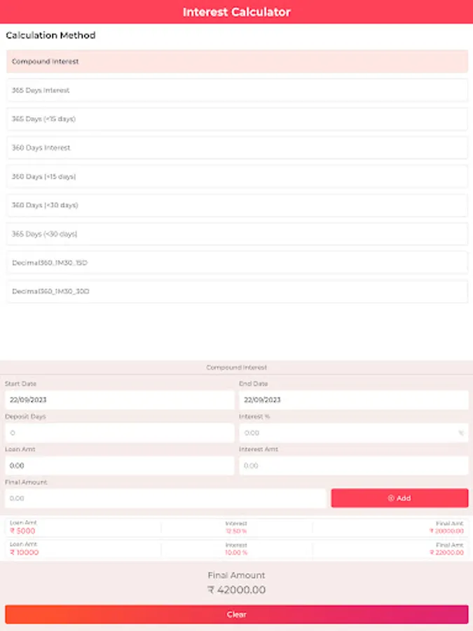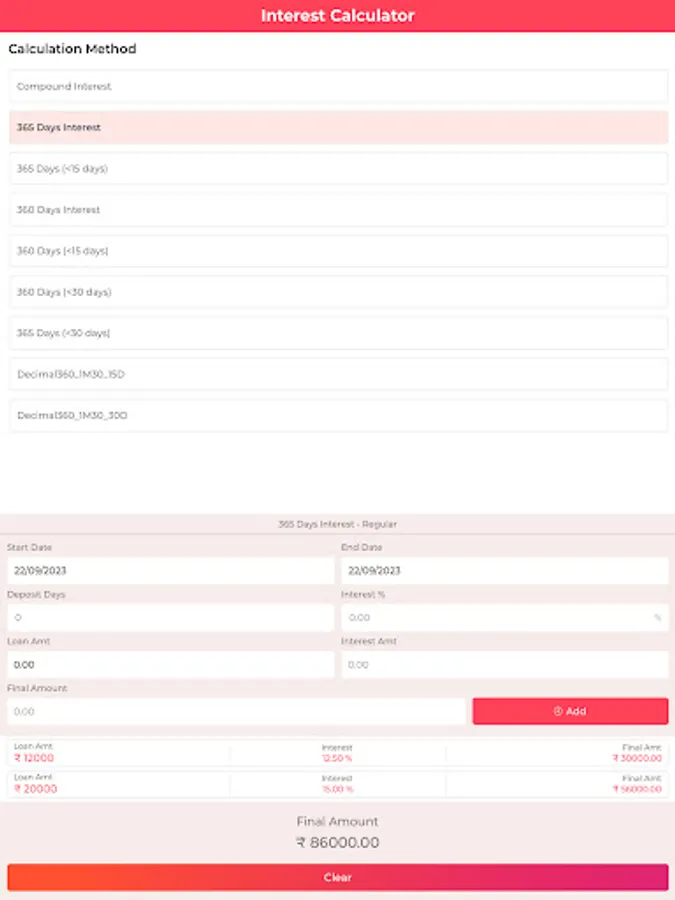 2. Multiple Calculation Methods: With support for various calculation methods, such as 360-day and 365-day calculations, as well as compound interest, you can easily accommodate different types of loans, including short-term and long-term financing.