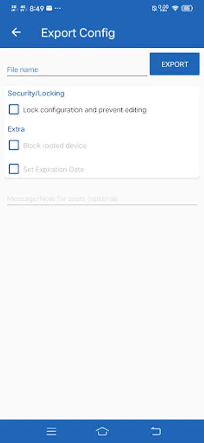 - Export encrypted config