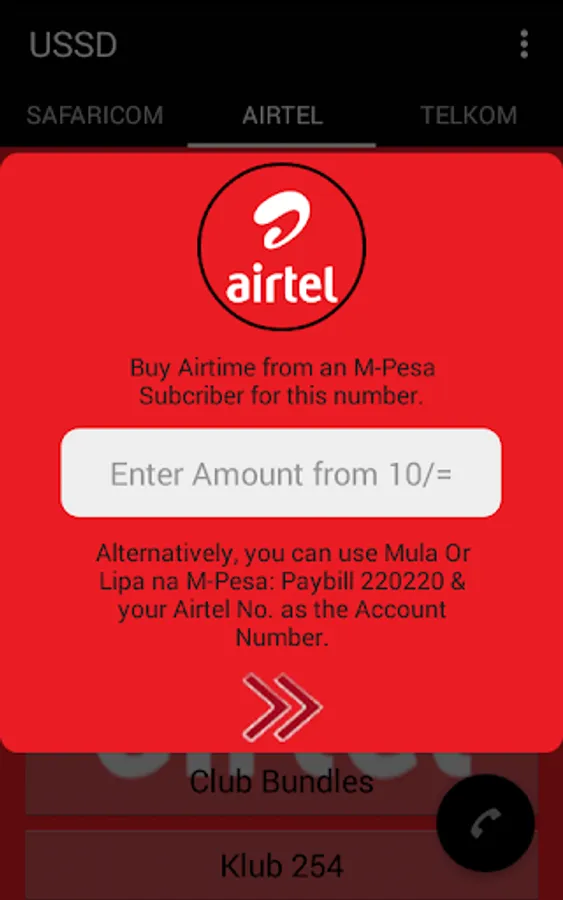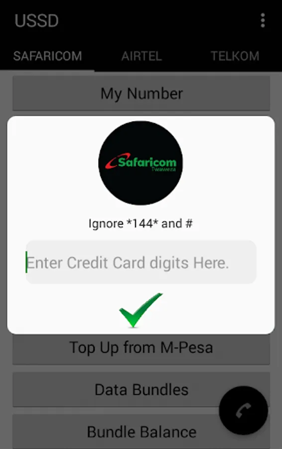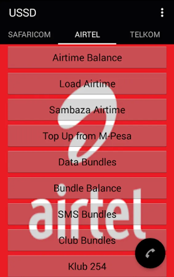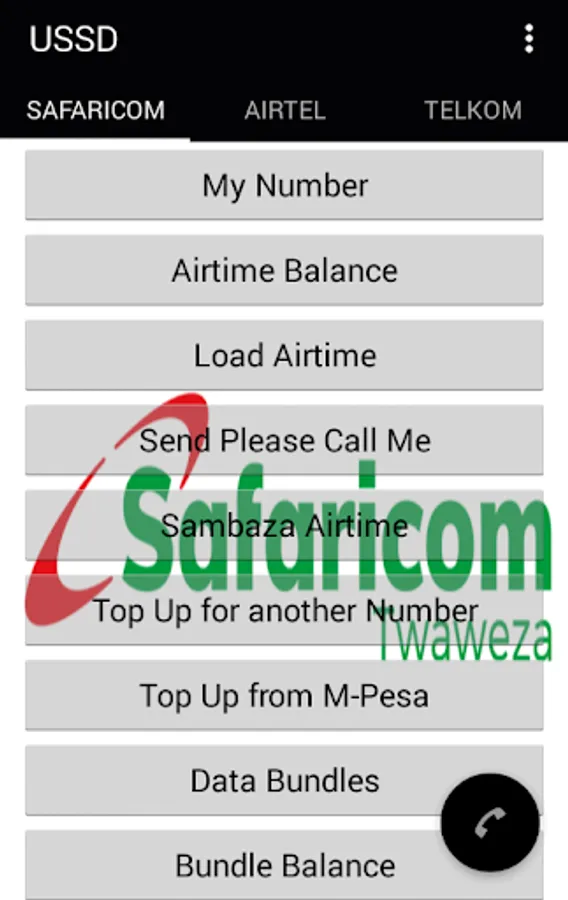 Running Safaricom, Airtel and Telkom USSD codes offline with a single click.