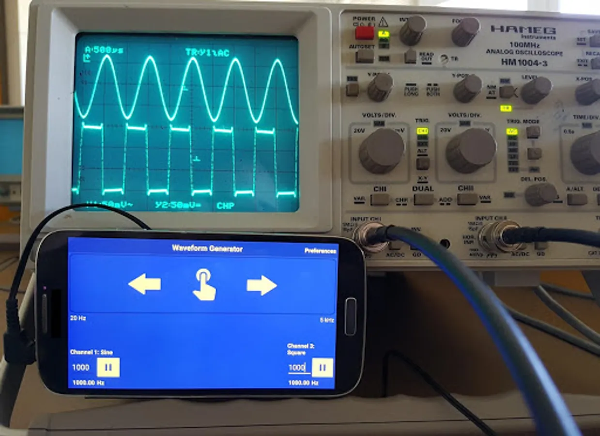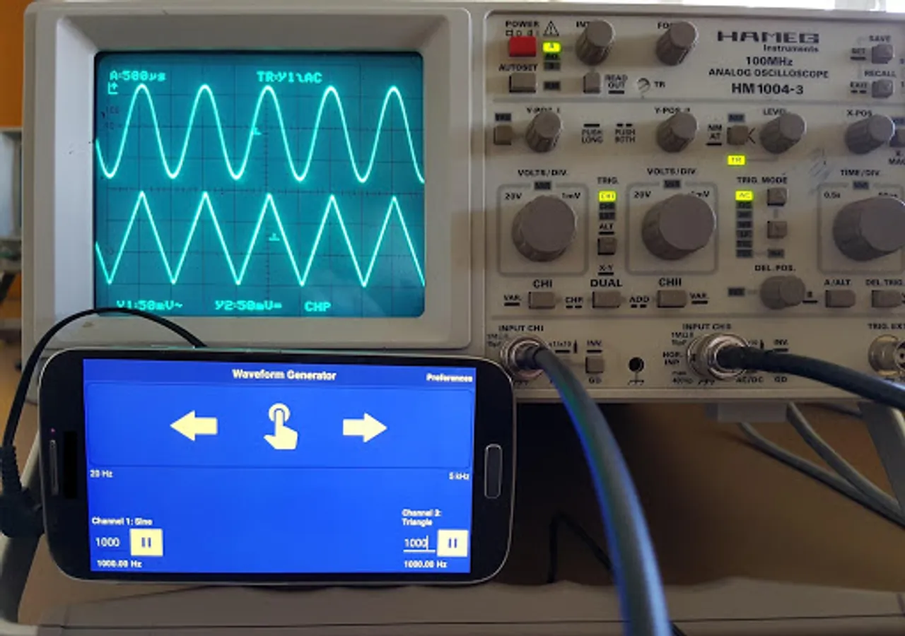 This is a waveform generator app for Android, capable of producing four different functions: Sine, square, triangle and sawtooth.