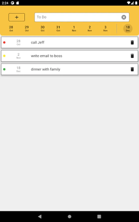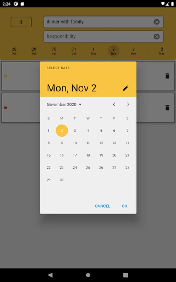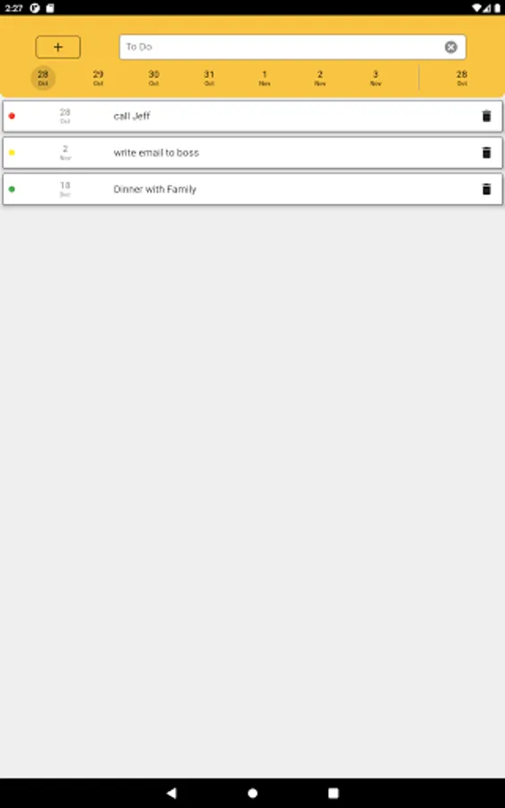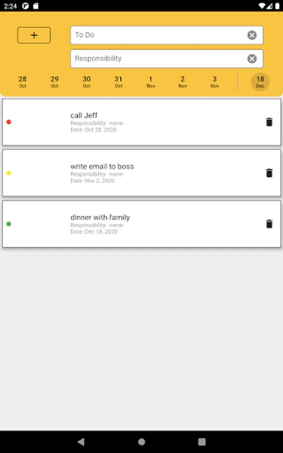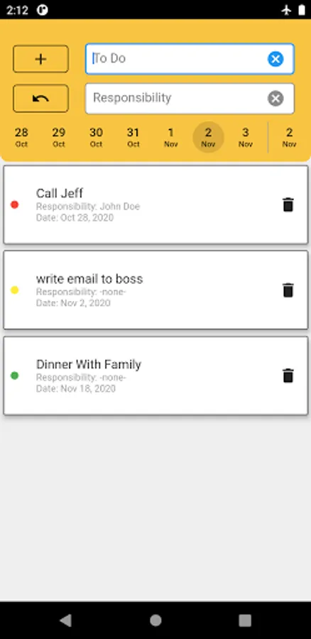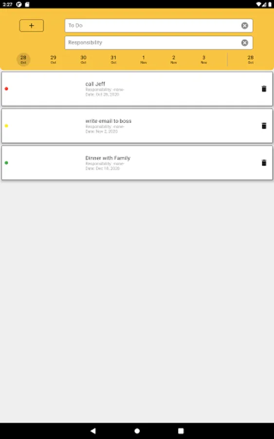 Die App hilft Ihnen, ihren Alltag zu verwalten und zu organisieren. Sie können verschiedene Aufgaben eingeben und diese mit einem Fälligkeitsdatum, sowie einer Verantwortlichkeit versehen. Auf Grundlage, des Angegebenen Datums wird eine Priorität gesetzt. Grün bedeutet es sind noch mehr als 7 Tage Zeit bis die Aufgabe erledigt sein muss. Gelb bedeutet es muss in unter 7 Tagen erledigt werden. Rot bedeutet unter 3 Tagen und Schwarz bedeutet, es hätte schon erledigt werden müssen. Die Rot bzw. Schwarz markierten aufgaben, werden zudem als Benachrichtigung ausgegeben. Sie finden diese in Ihrem Benachrichtigungscenter.