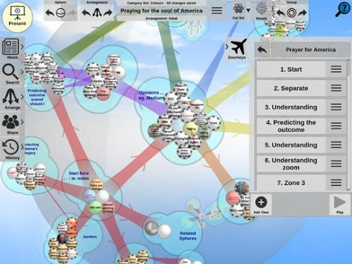 Thortspace is 3D Collaborative Online and Offline Mind Mapping - a visual thinking tool for creative brainstorming, problem solving, collaborative research, education, and just generally thinking about stuff. Thortspace goes beyond 3D mind mapping to reflect how minds work.