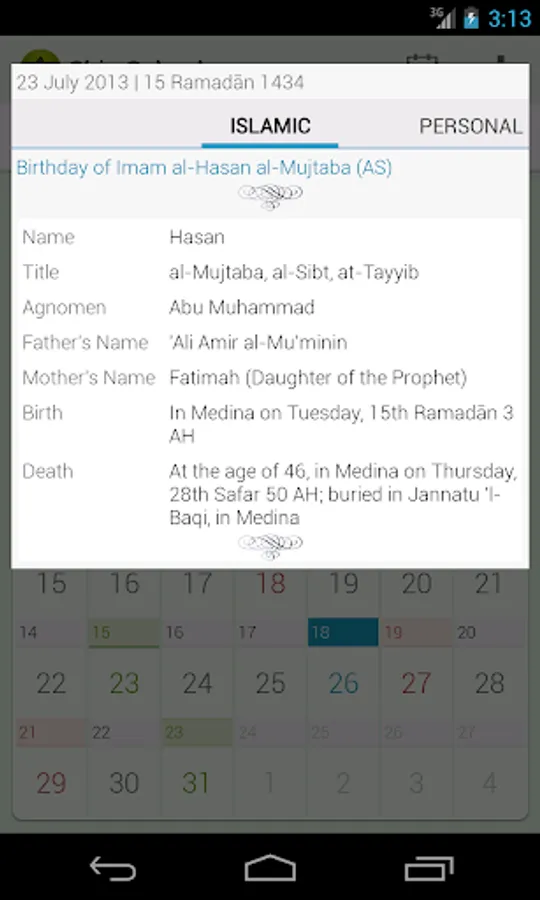 **Display date detail according to Islamic sources
