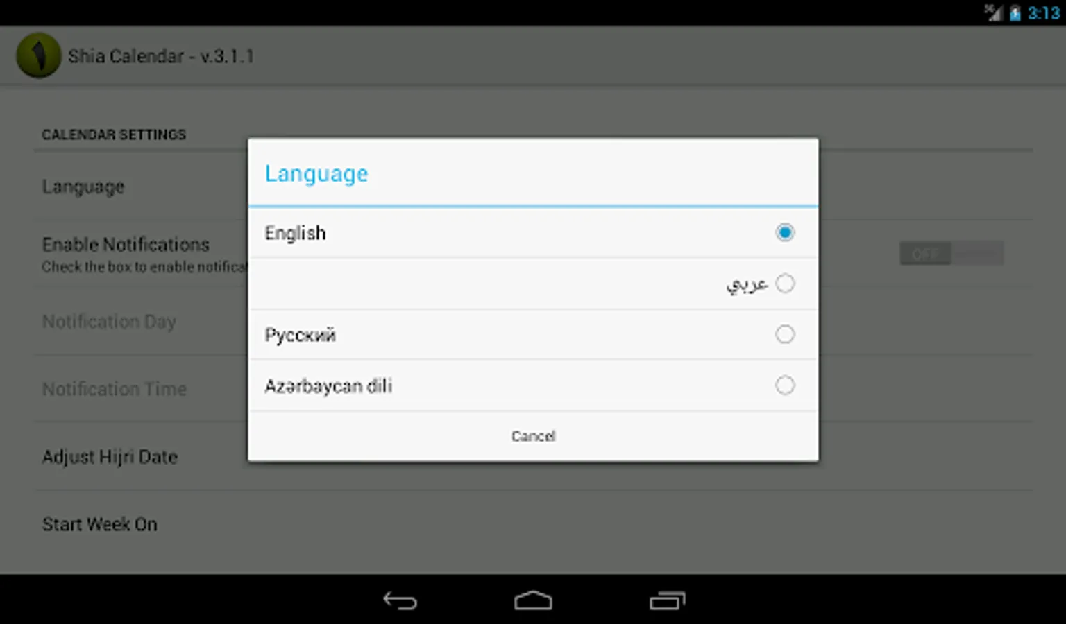 Shia Calendar now available in Azeri!