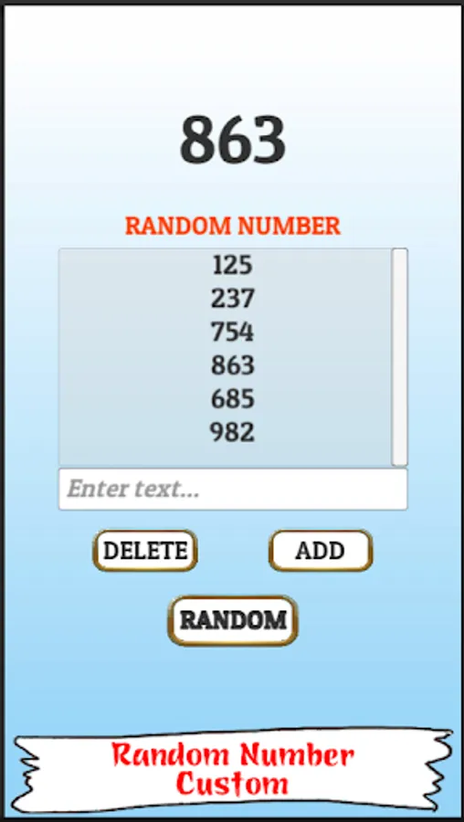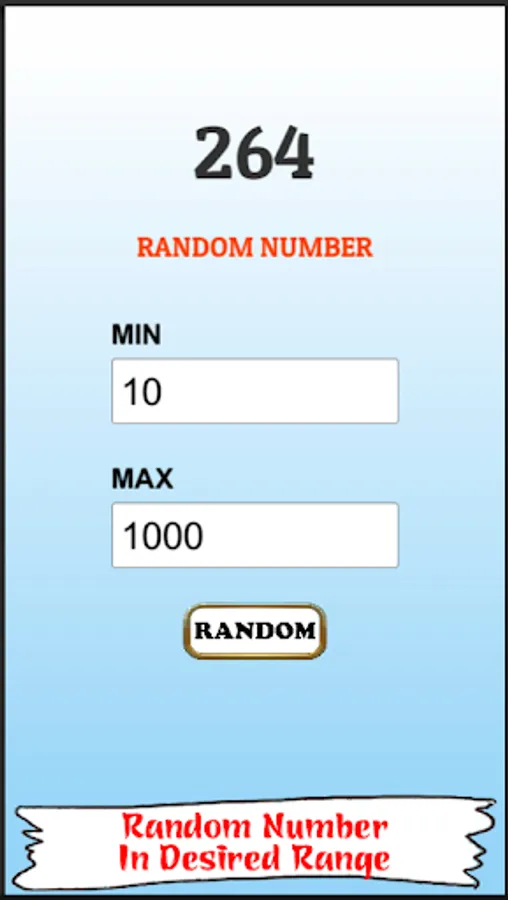 - Enter two numbers, then press Random and the application will automatically choose a number for you.
