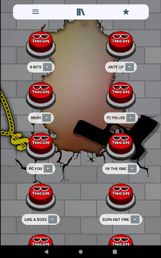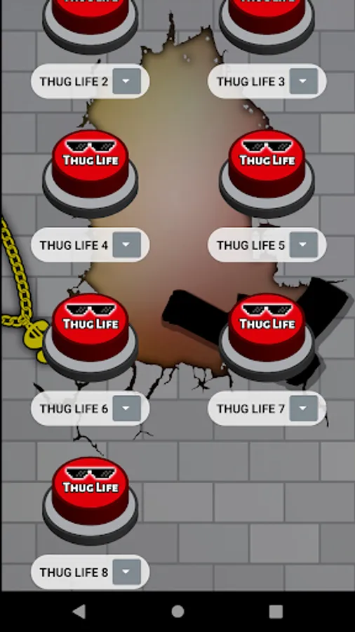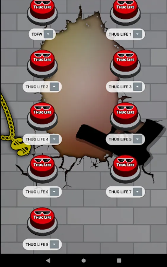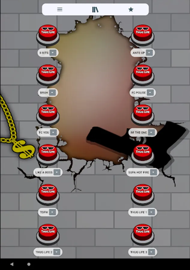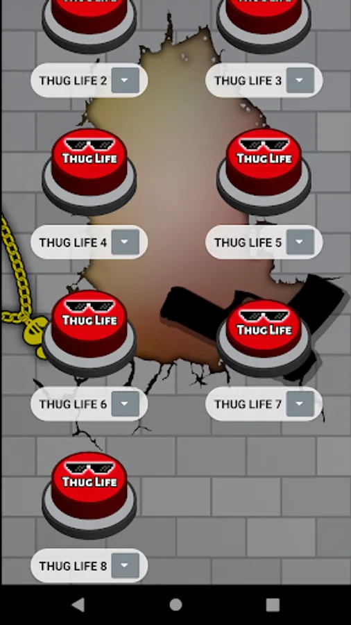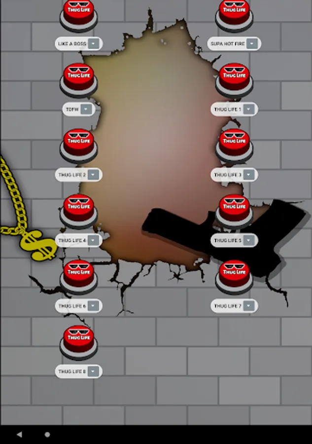 In addition, this app is designed with simple, attractive, modern graphics and set in the meme. For example the buttons with sunglasses 🕶️ from deal with it 😎 and a large sign with the words Thug Life. Either the 🧱 neighborhood broken brick wall background with graffiti and a gang neighborhood gangsta gun o or a rebel ⛓️ dollar gold chain 🤑. To complete the slightest app with the most complete compilation of thug life songs.