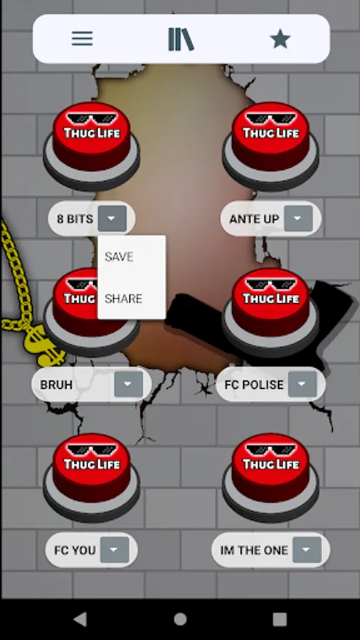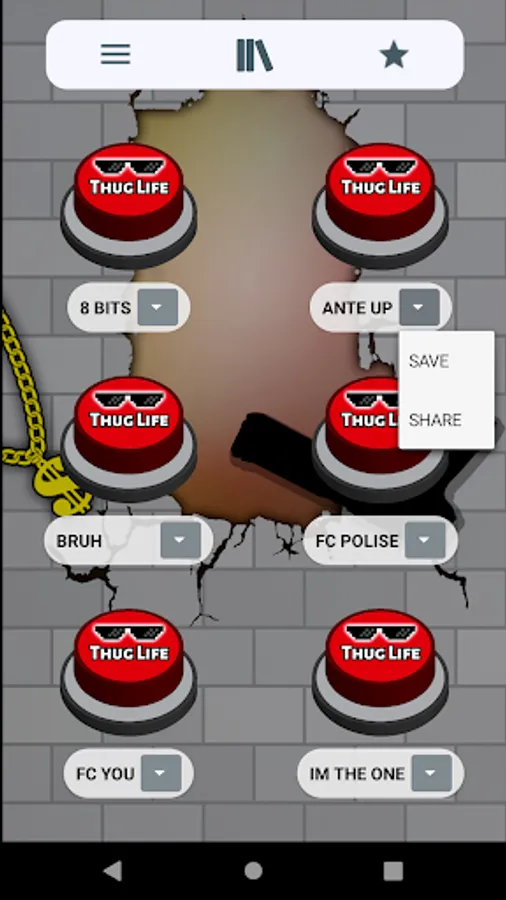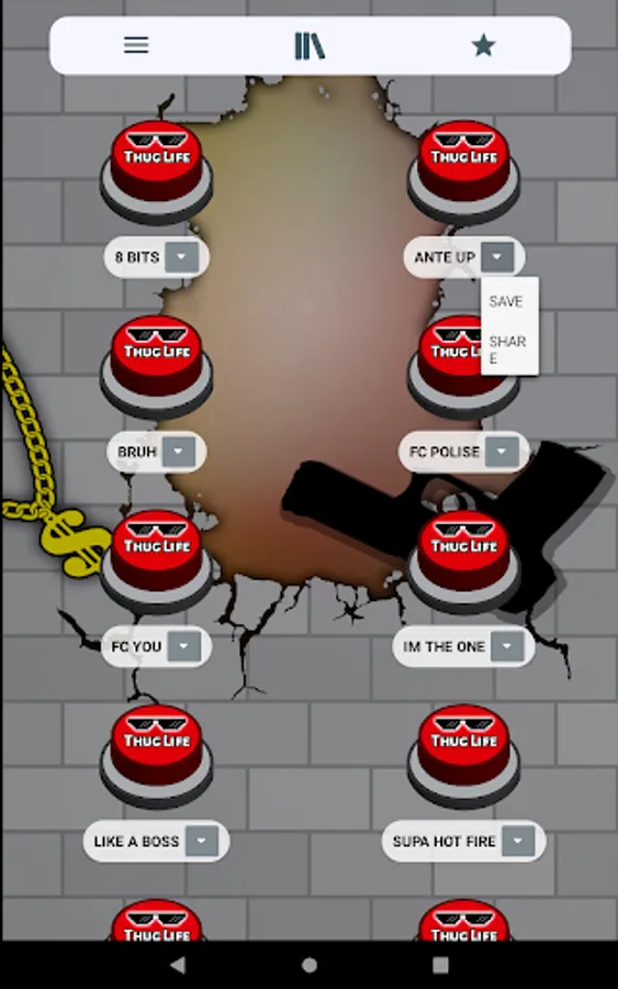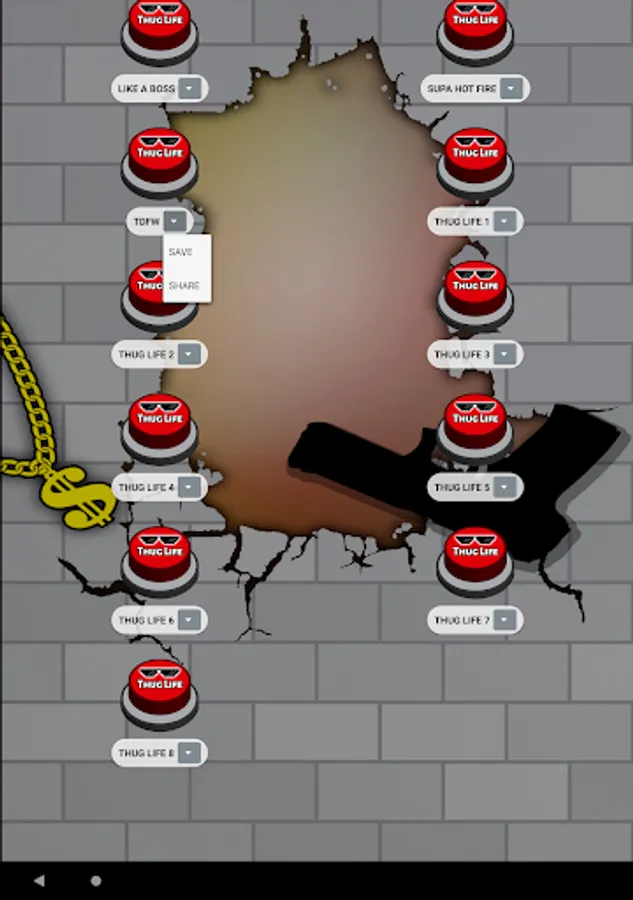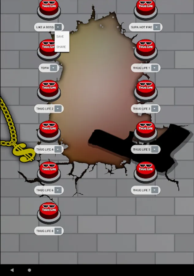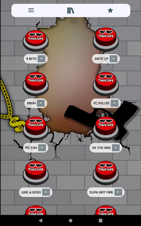 In addition, this app is designed with simple, attractive, modern graphics and set in the meme. For example the buttons with sunglasses 🕶️ from deal with it 😎 and a large sign with the words Thug Life. Either the 🧱 neighborhood broken brick wall background with graffiti and a gang neighborhood gangsta gun o or a rebel ⛓️ dollar gold chain 🤑. To complete the slightest app with the most complete compilation of thug life songs.