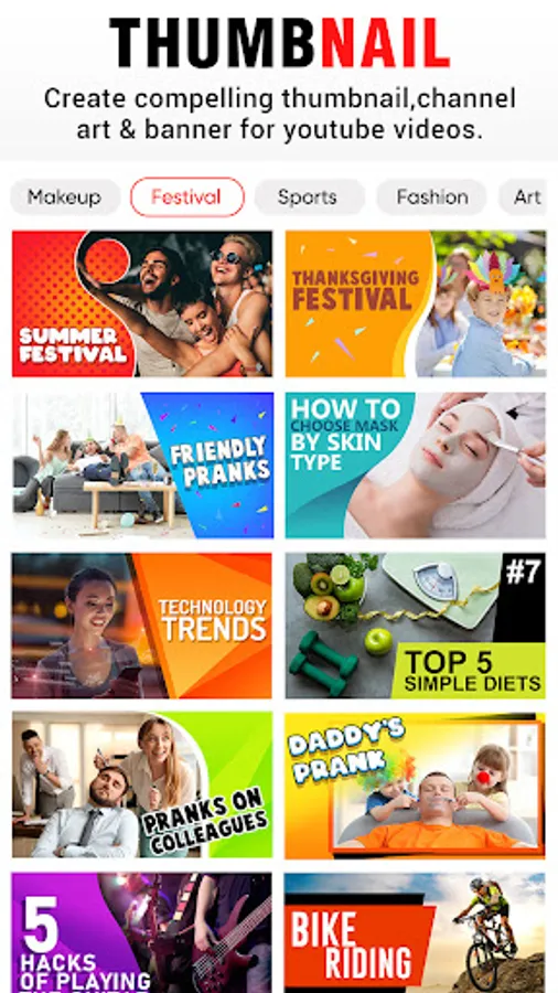 Download this thumbnail maker app and create thumbnails, cover art photos for social media, all for free.