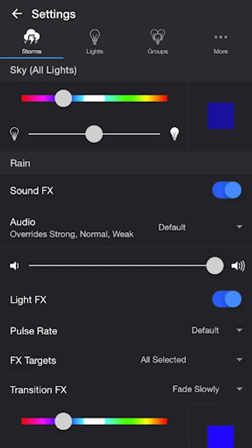 • Change rain transition effects (pulse, fade quickly, fade slowly)