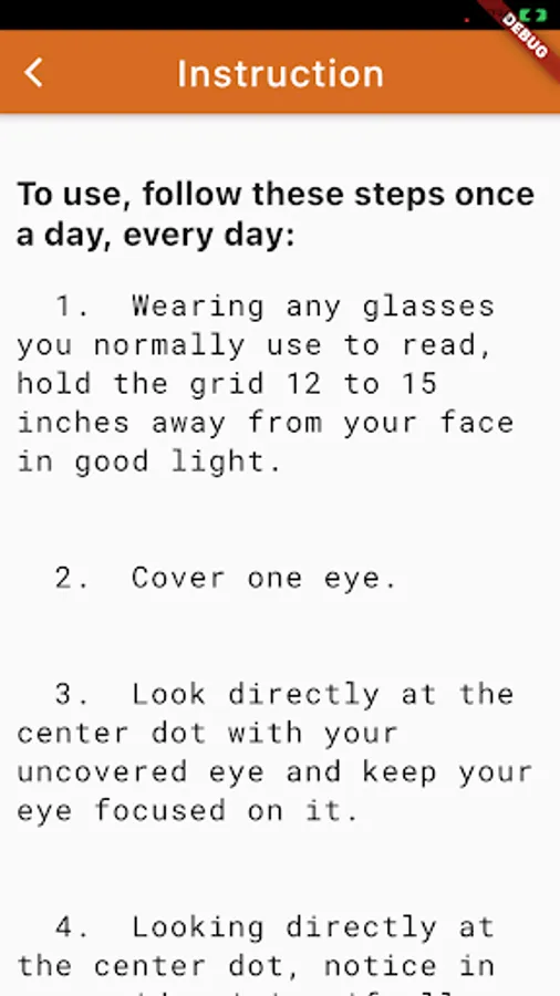 Amsler Grid daily eye testing application is a tool for identifying distortion and or spots in your visual field.