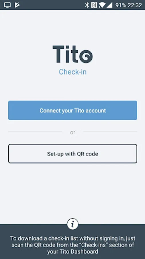 The Tito Check-in app allows you to log in to your Tito account to download attendee lists for on-site check-in.