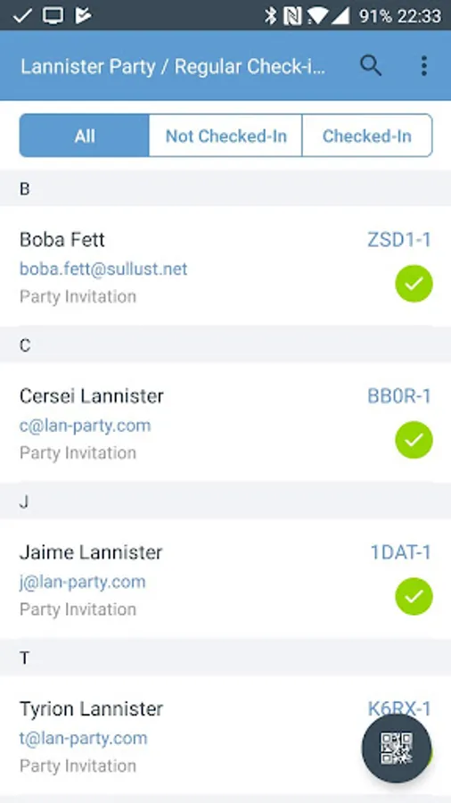 Attendees can be checked in manually, or by scanning the QR code on tickets issued by Tito.