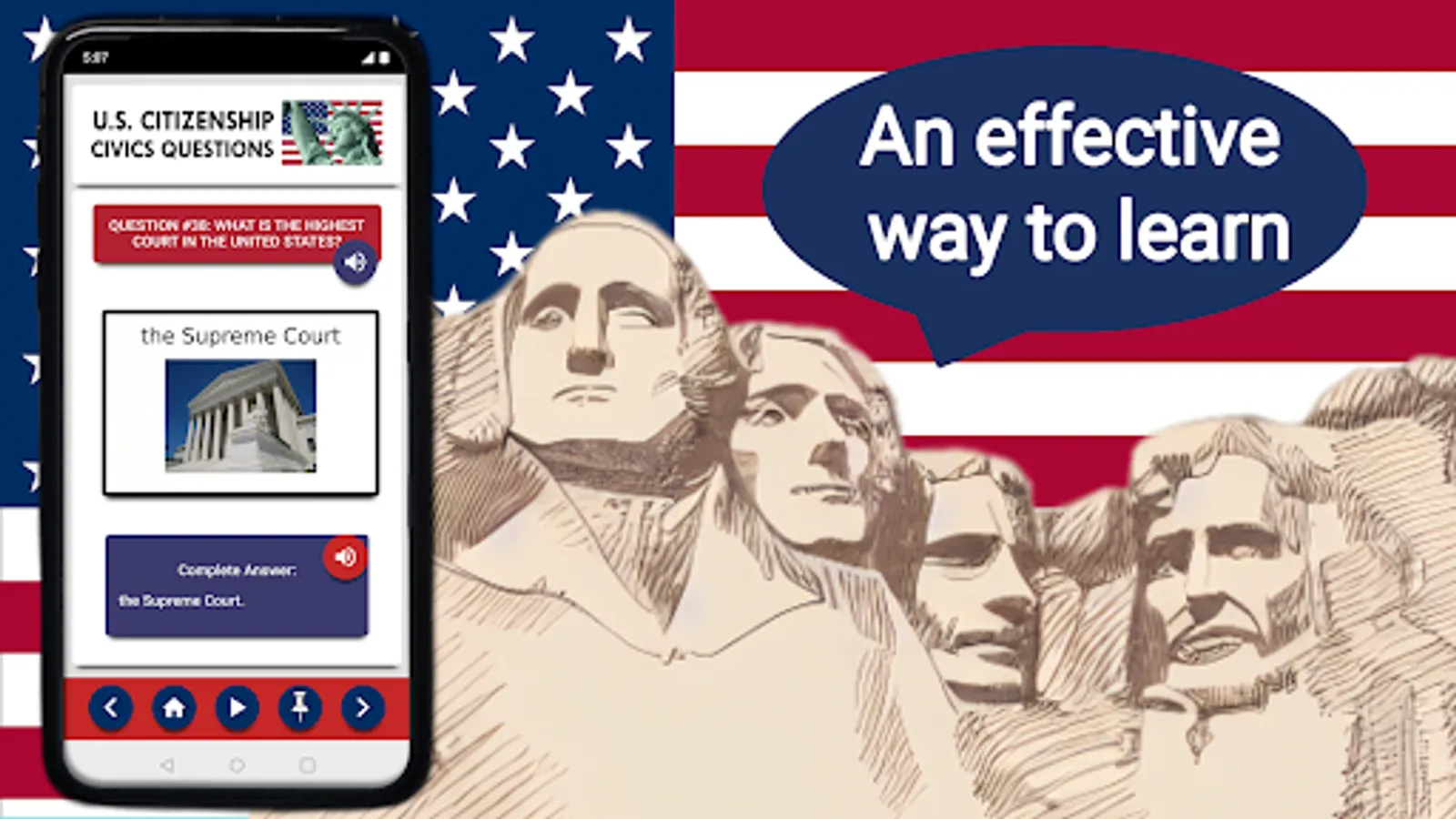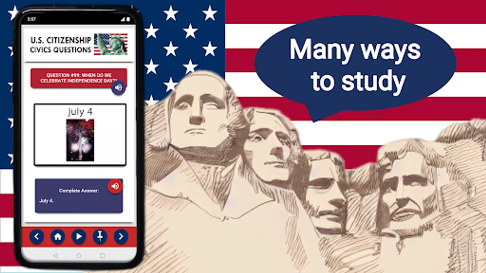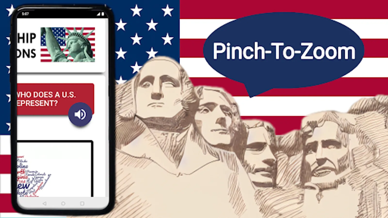 This application will help you learn about the history and government of the United States while preparing for the naturalization test. The illustrations will help you remember the information and make the process more enjoyable.