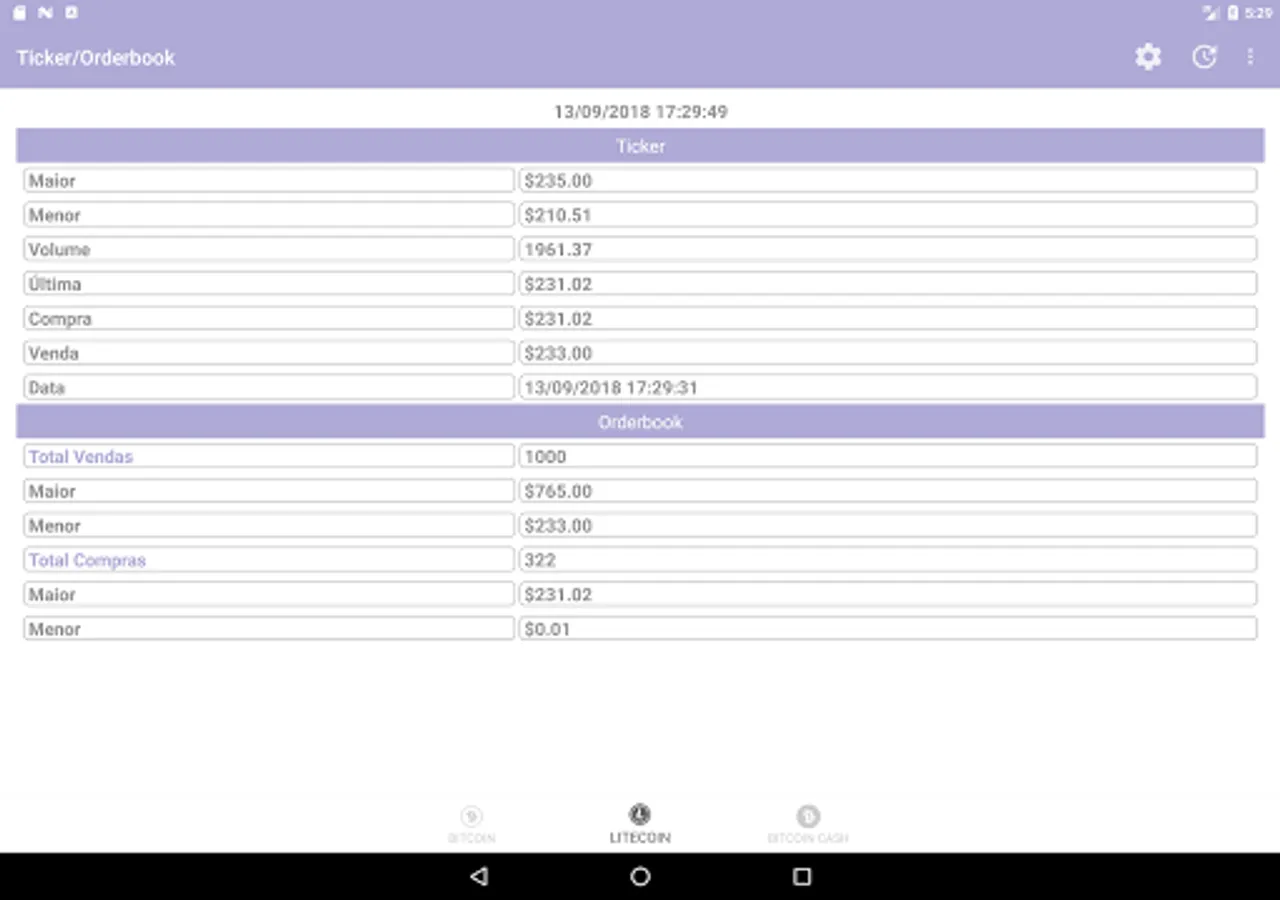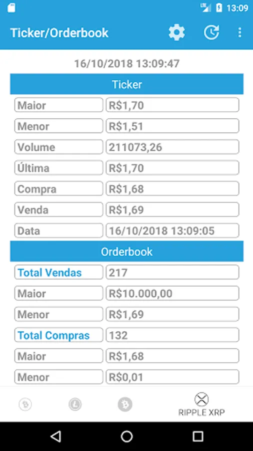 Listing of Ticker and Orderbook of all the currencies that are commercialized by the brokerage Market Bitcoin, using the API of the same one.