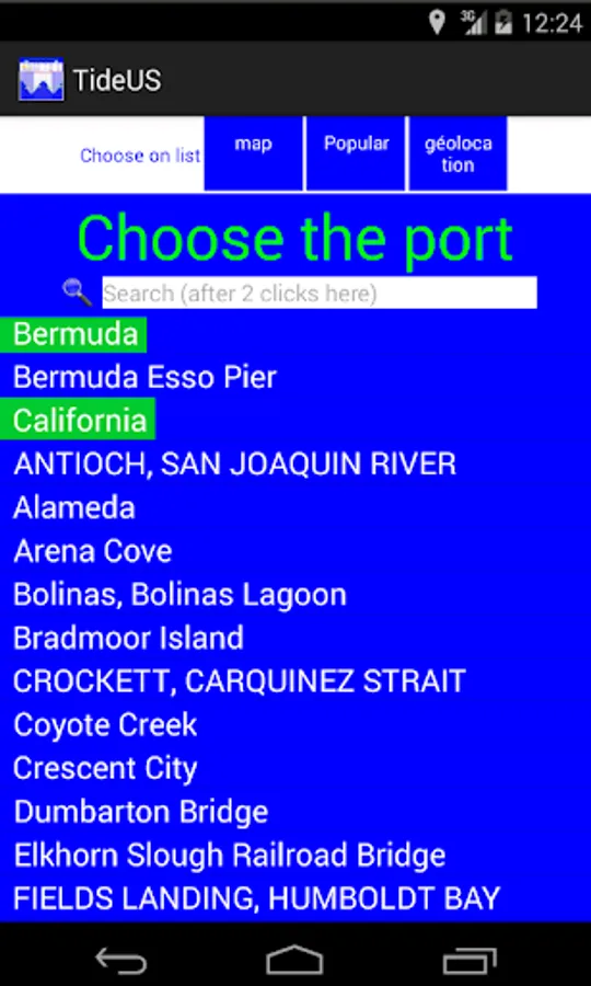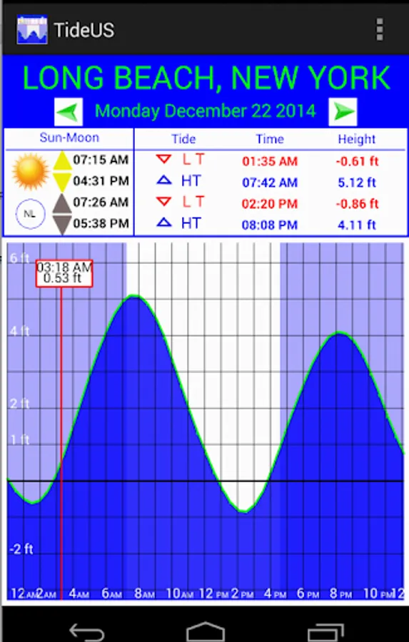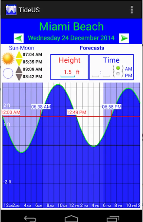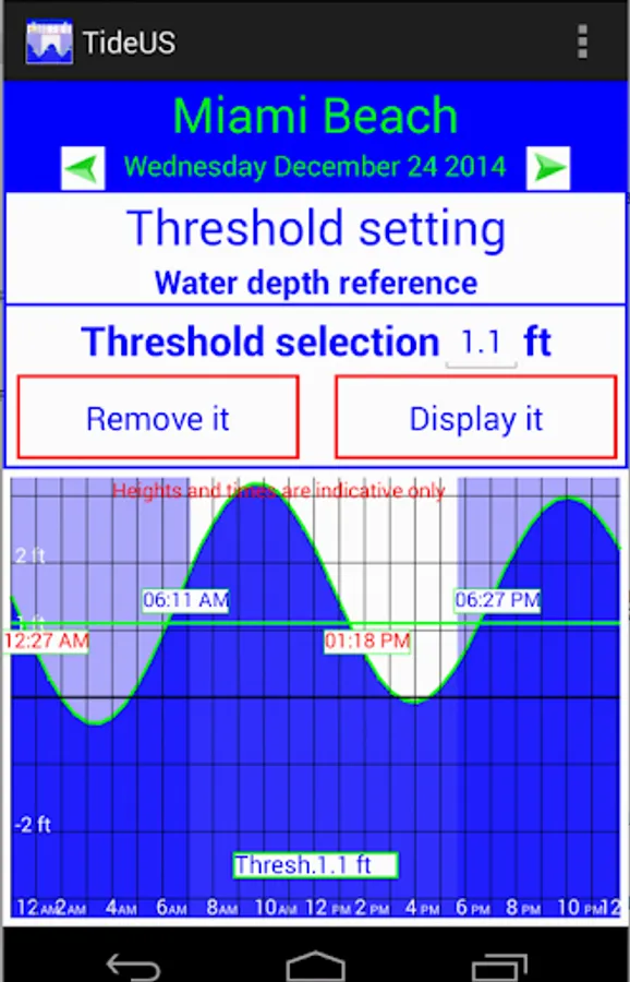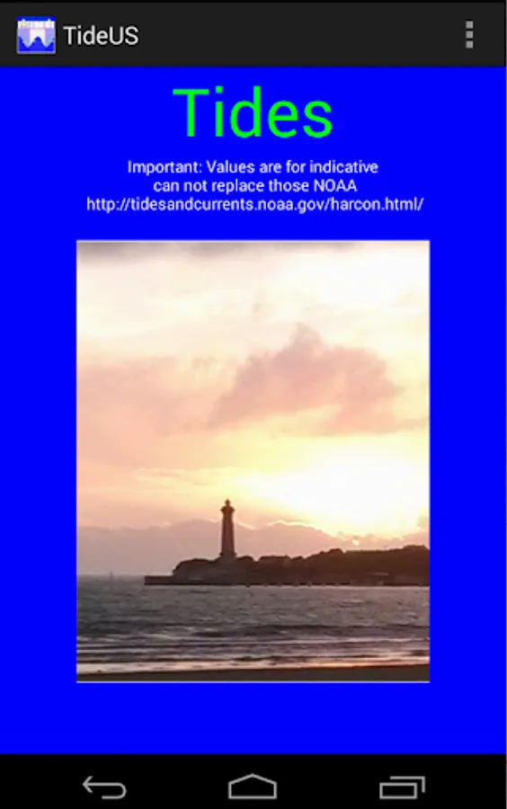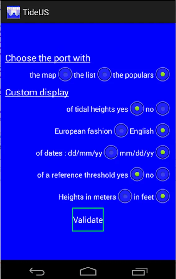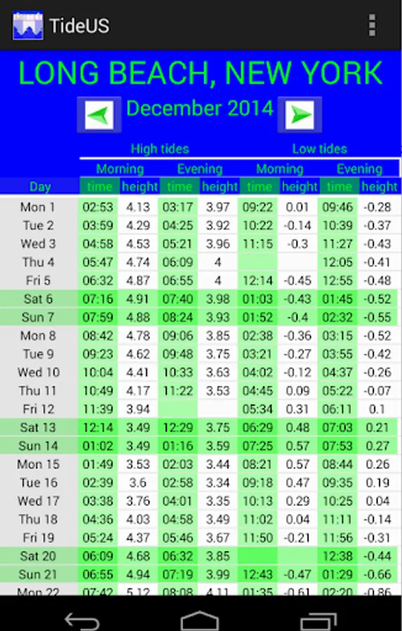 The menu is used to calculate the tides and to give specifics on a day or month.