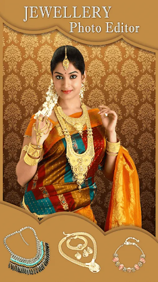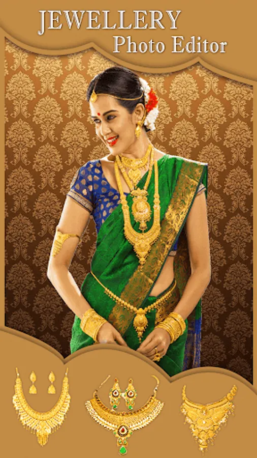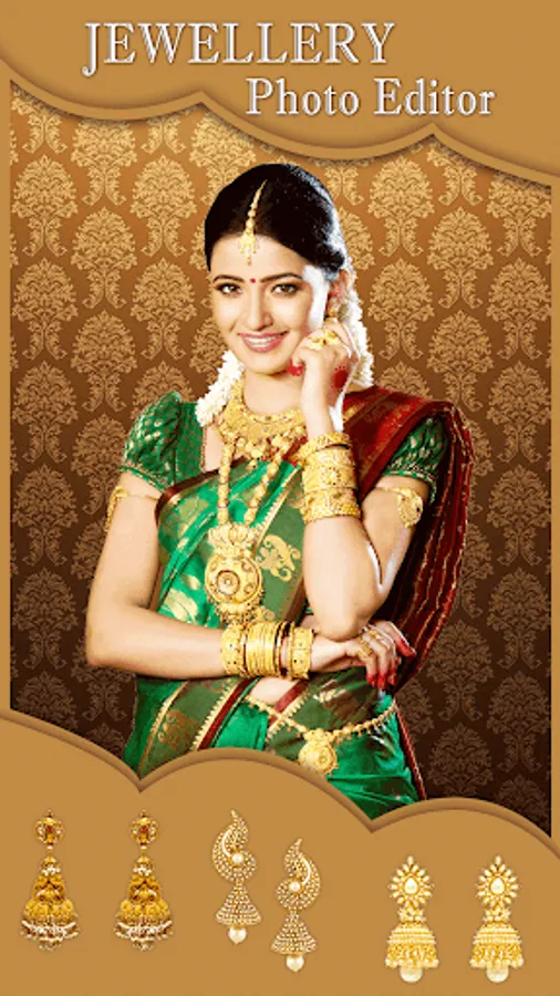Women Jewellery Photo Editor 2019 app will help you to pickup various Jewellry items like Necklaces sets, Ear Rings, Ear Hangings, Diamond Jewellry Sets, Diamond and Gold Jewelery sets from the collection of the jewellery and try on you how they look on your body.