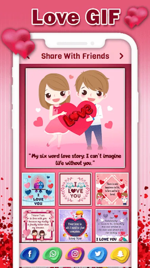 Love Gifs is a collection of the best couple (animated Gifs) that are easy to share with friends on WhatsApp, Telegram, as well as in social networks.