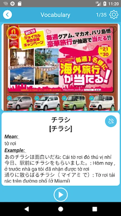 • Learn vocabulary by watching pictures and listening to pronunciation