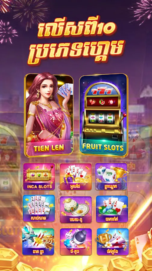 With 14 diverse casino game genres, featuring attractive Card Game Casino Online series, there are many types such as Tienlen, Sabsam, Osphe, ... up to Bet Game: Sicbo, Roulette, Kla Klouk and Slots Game: Inca Slots , Fruits Slots.