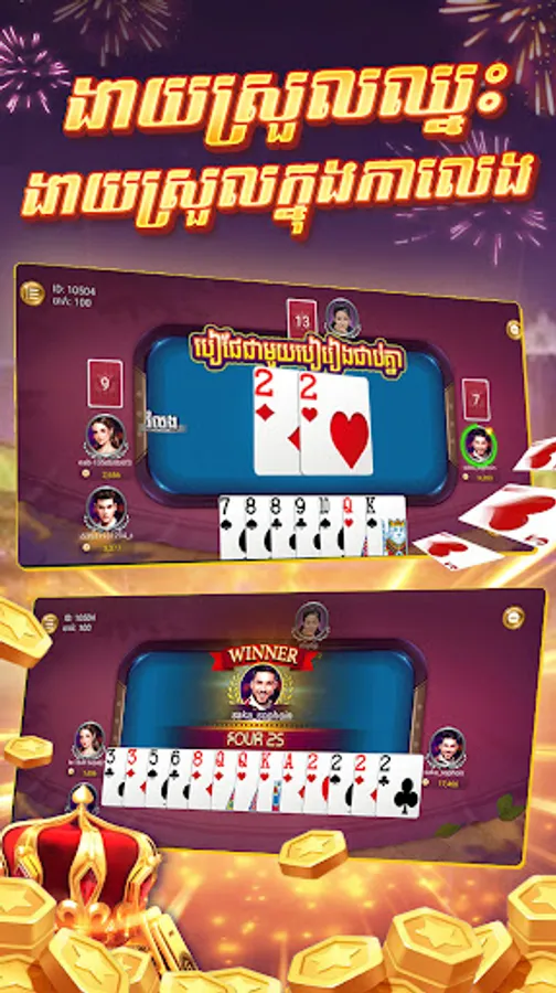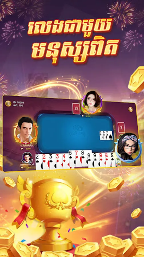 You are looking for a Casino Online game to help you entertain anytime, anywhere and experience for free. Download Tienlen Free Online, Khmer Card Game Casino Online helps you to have a lot of fun every day. Let's play games together to get lucky rewards and big prizes are waiting for you. Join the largest casino gaming community in Cambodia today and share your amazing victory moments with club members,