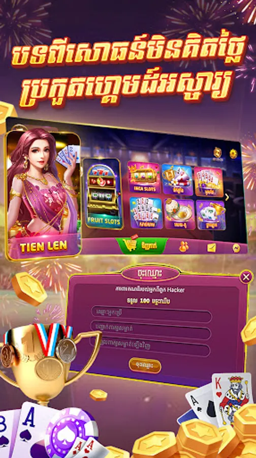 Tien len Online - is an online casino game with a perfect new version with 12 different types of games and full of charm. Tien len Online is currently the most popular Khmer Card Game in Cambodia, bringing a completely different update with other online Casino Game app. Features with Online Casino Card Game like Tienlen; SabSam; Fruit Slots; Inca Slots; Kla Klouk; Osphe; ... with easy play rules. More importantly, the game has been changed to suit the people of Cambodia.