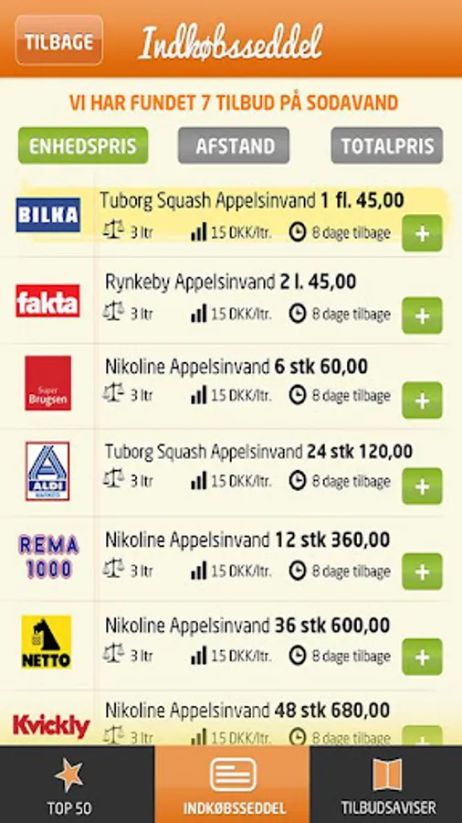 The offer week app automatically checks whether the items written on the shopping list should be on offer in Bilka, Føtex, Netto, Aldi, Stark, XL Byg, Salling or in one of the other chains.