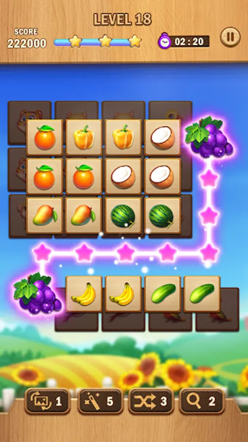 - Tap two identical tiles without the block of the others to connect using no more than 3 lines