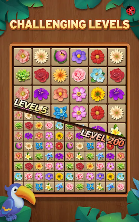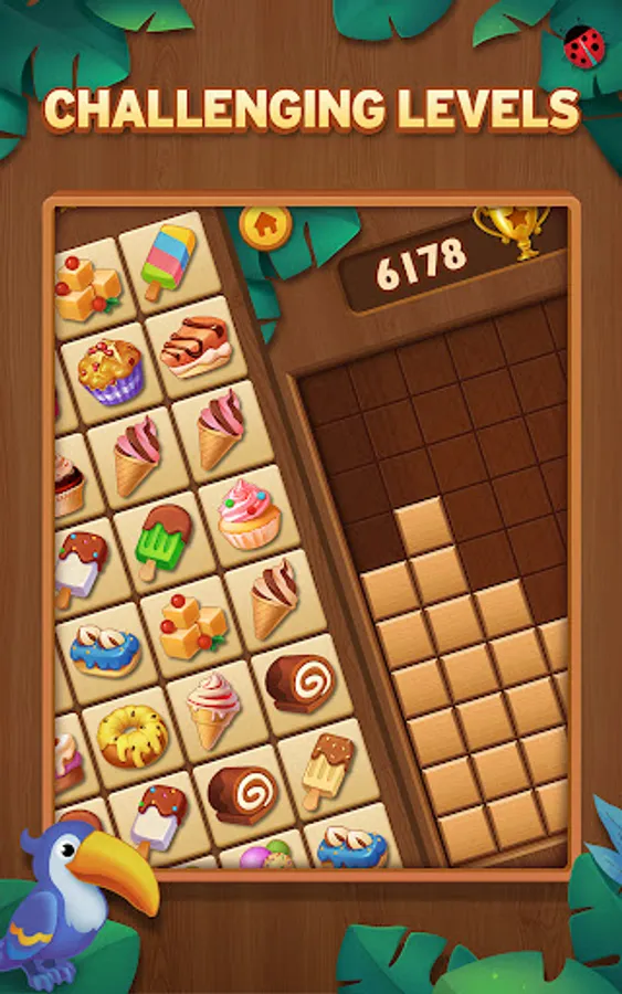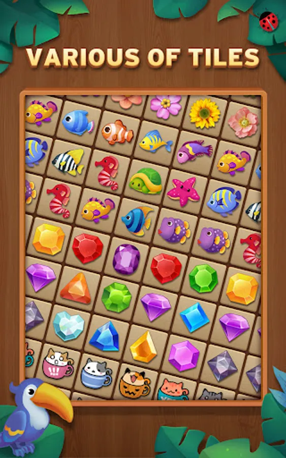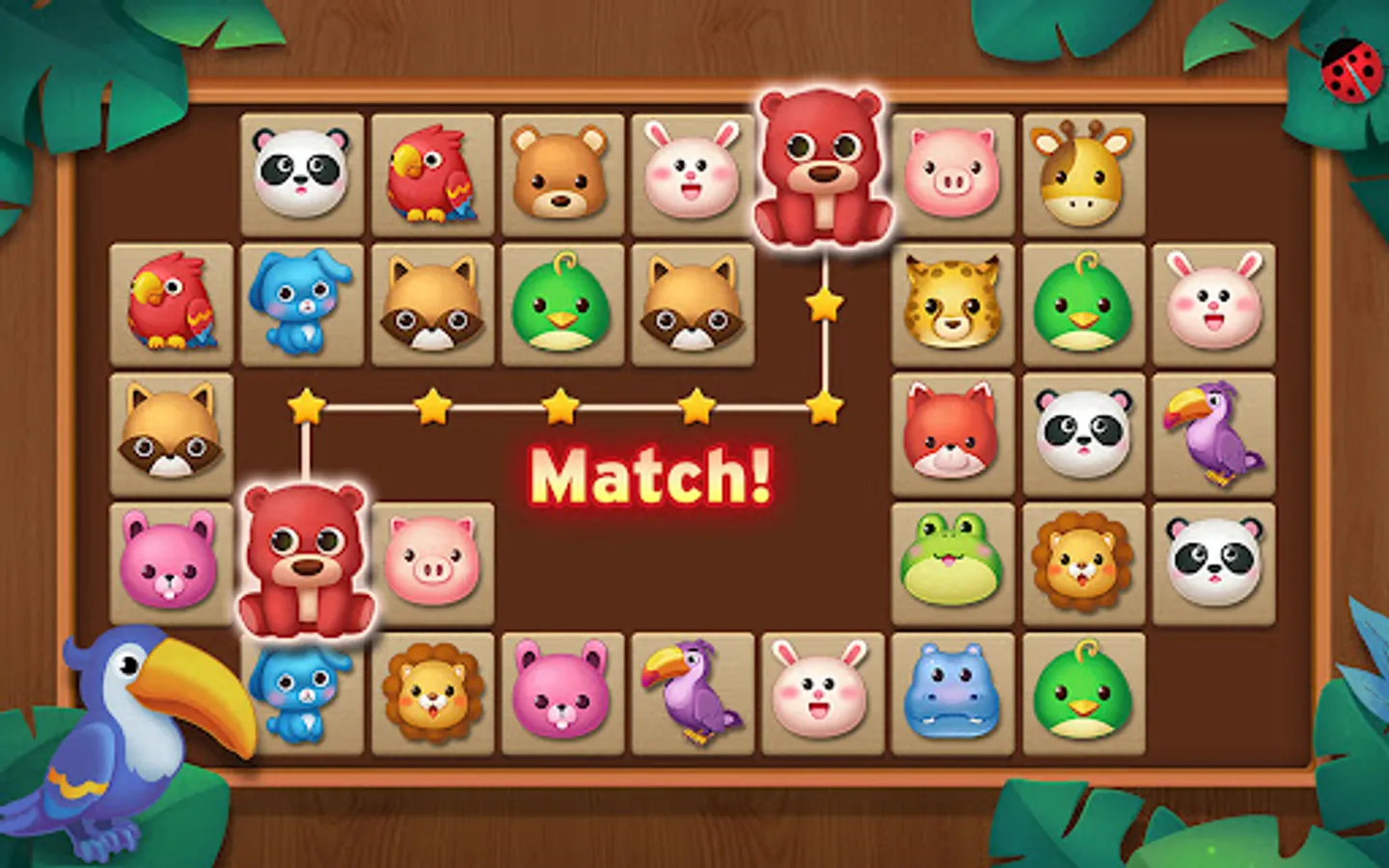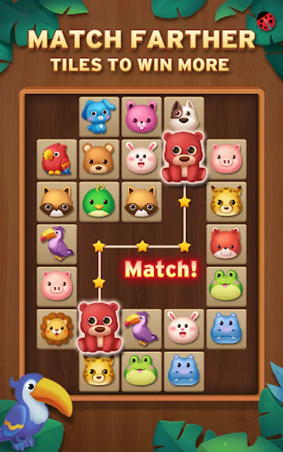 Find two identical tiles, eliminate them, clear the board and pass the level!