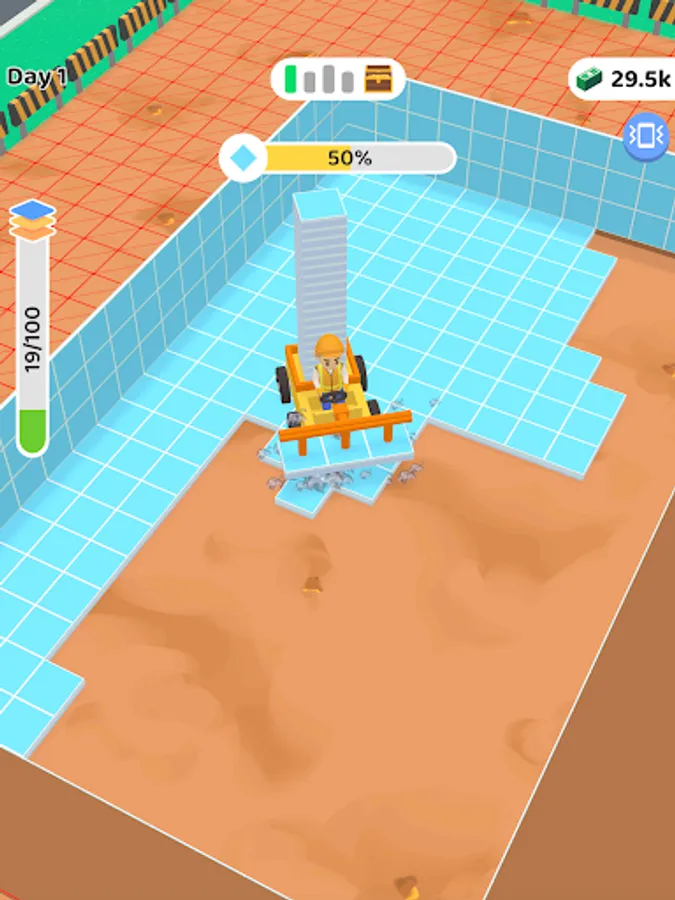 Drive your tiling cart and build your own cozy community! Get idle income and turn into a construction tycoon!