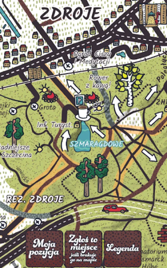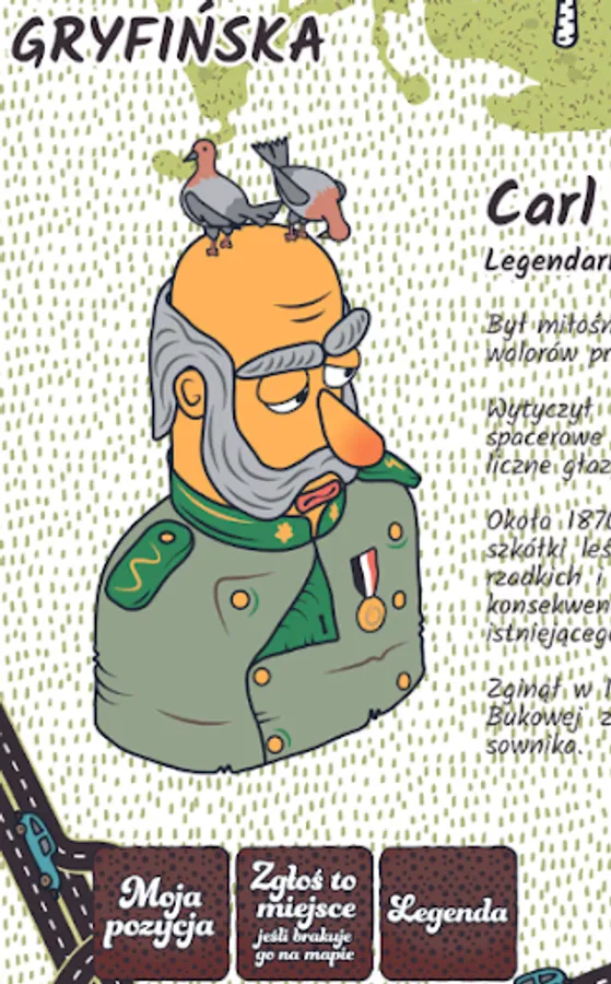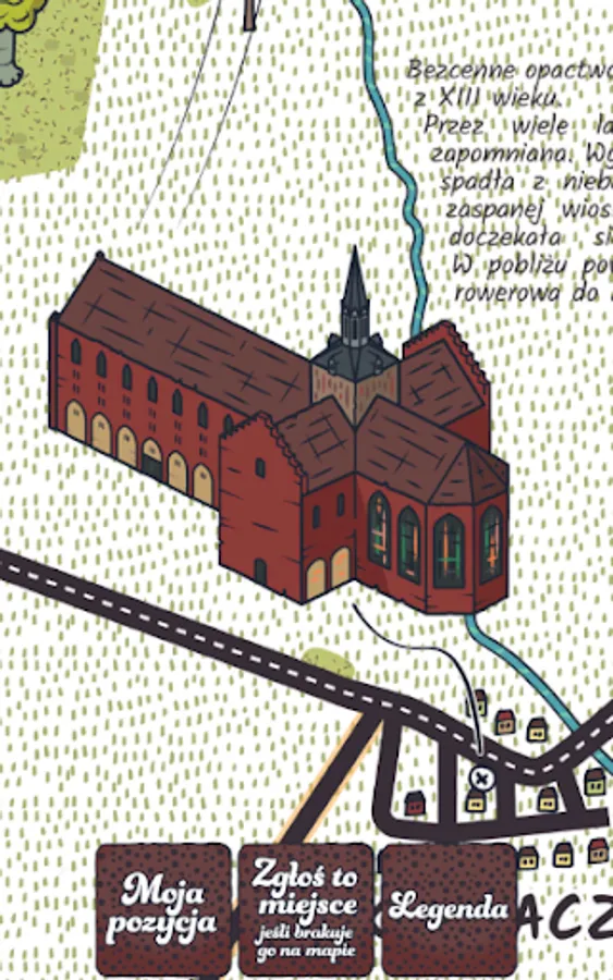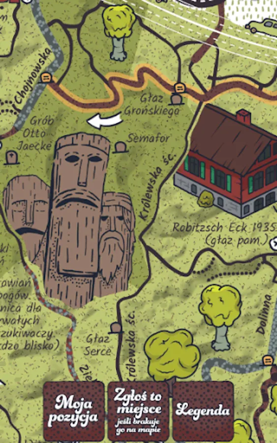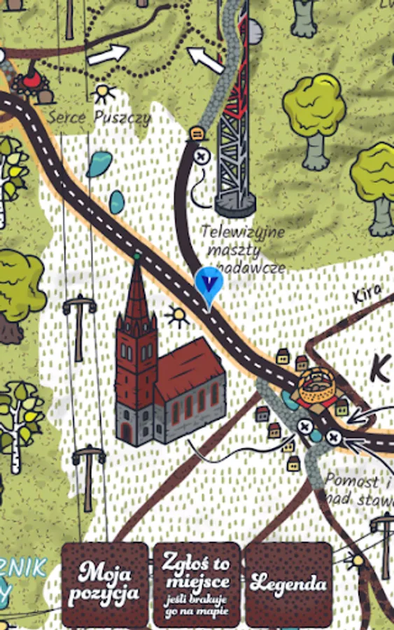 The map is the effect of many cycling trips in the Bukowa Forest. Contains all places worth visiting and many subjectively selected by the author. Originally it was created as a printed map, later the idea of an Android application appeared.