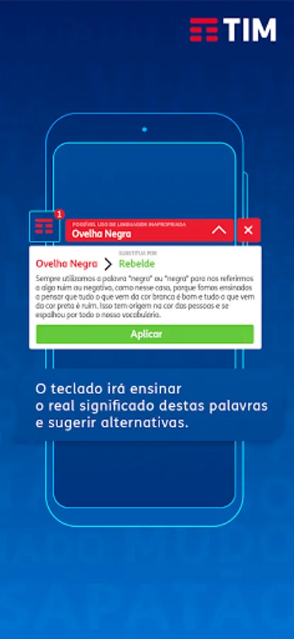 The TIM Conscious Keyboard is a mobile keyboard created with the objective of identifying words and expressions that may have prejudiced connotations when used in everyday messages. Developed by TIM Brasil in partnership with Virgula Consultoria, the application provides explanatory content on the reasons why the language is classified as prejudiced, suggesting non-pejorative alternatives.