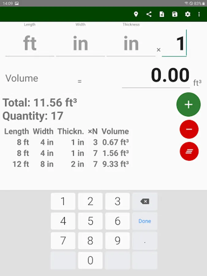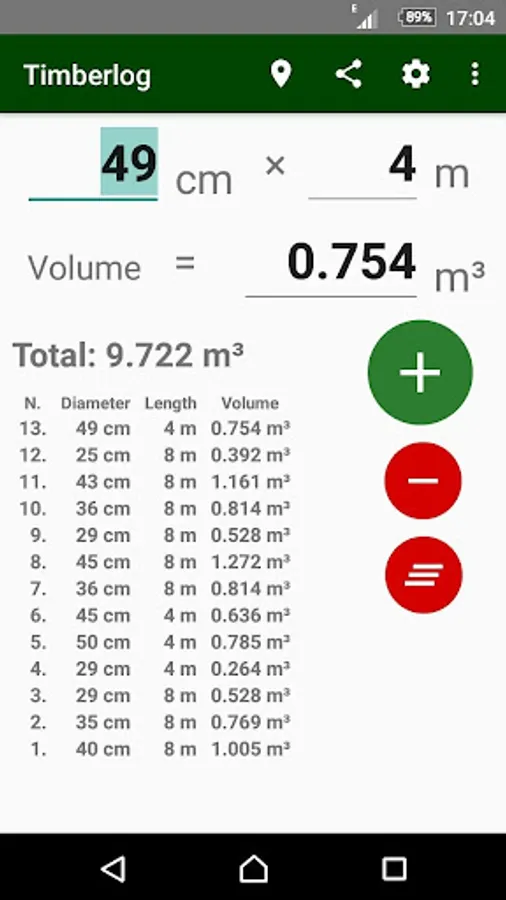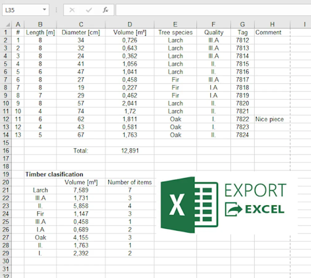 Calculate timber volume in cubic metre, cubic foot volume (CFT), or board feet (CBF). Compute round timber volume from a diameter or circumference and length. Calculate sawn timber volume (planks, wooden beams,..) from the width, thickness and length. Create a list and share it over email, other sharing apps and cloud storage services for free. Create an Excel file report that can easily be imported into Excel and other spreadsheet applications.