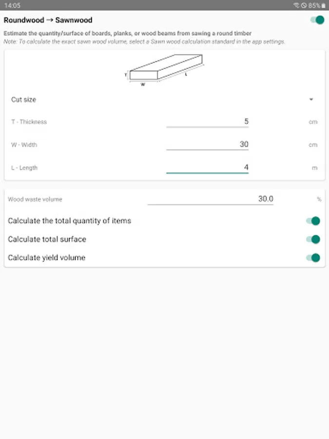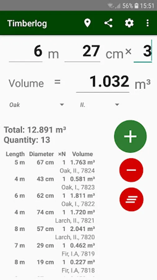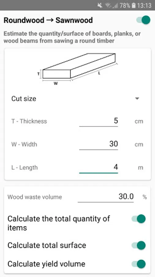 - effective and intuitive round wood and sawn wood volume calculator