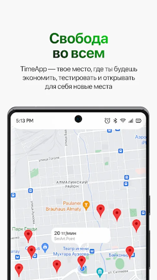 TimeApp is a per-minute payment application. Pay by the minute in co-working centers, fitness clubs and entertainment centers. Stay in your favorite places for as long as you need. No overpayments, save time and money!