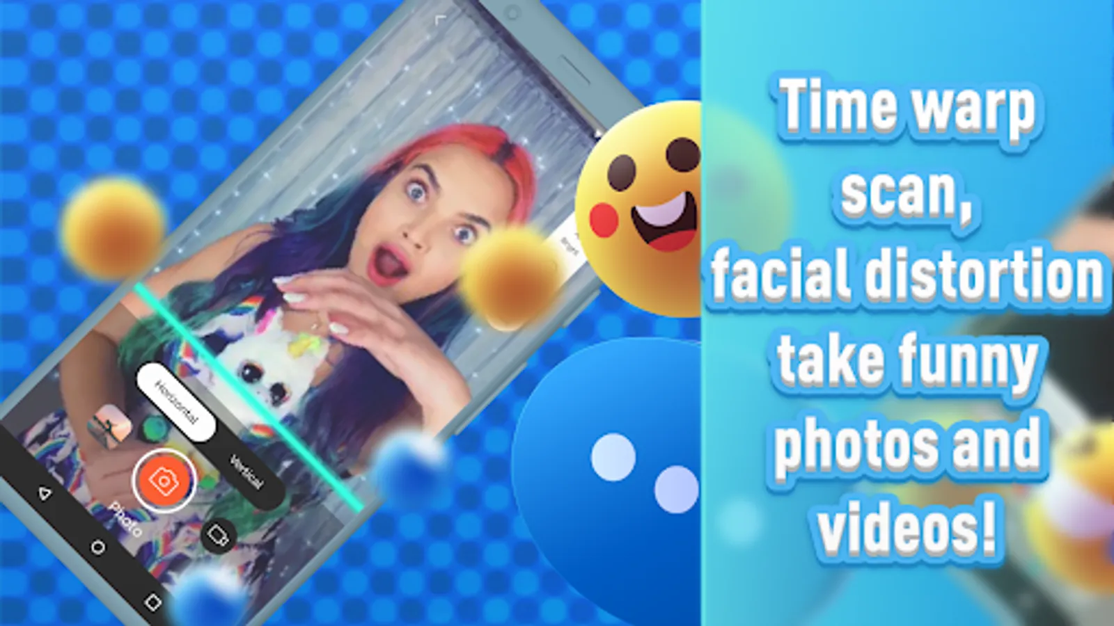 The functionality of free Time Warp scan, face warp game program for distorting the face with a blue stripe will give you to form a variety of photo antics with filtering and videos with timewarp results.